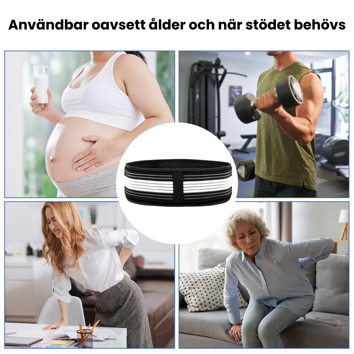 Vi förstår tvekan — många som använder bältet idag har testat annat utan resultat. Därför är FlexWrap designat för att ge målriktad kompression just där smärtan ofta uppstår, exempelvis vid ischias, ländryggsbesvär eller bäckeninstabilitet.